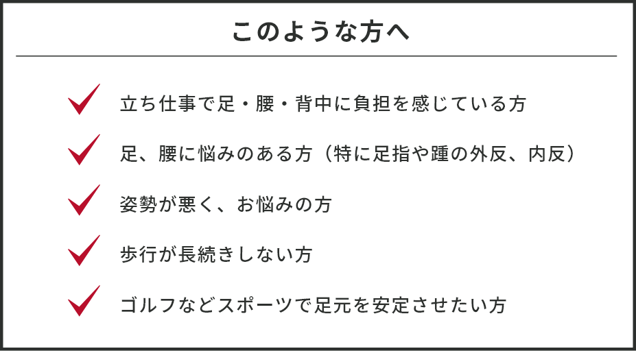 通常、人の身体と地面との唯一の接地面が足裏です。その接地面の環境次第で、皆さまのパフォーマンスが変化すると言っても過言ではありません。スポーツ環境のみならず、日々の生活における「歩く」「走る」などにおいて、足裏に最良の環境をご提供いたします。